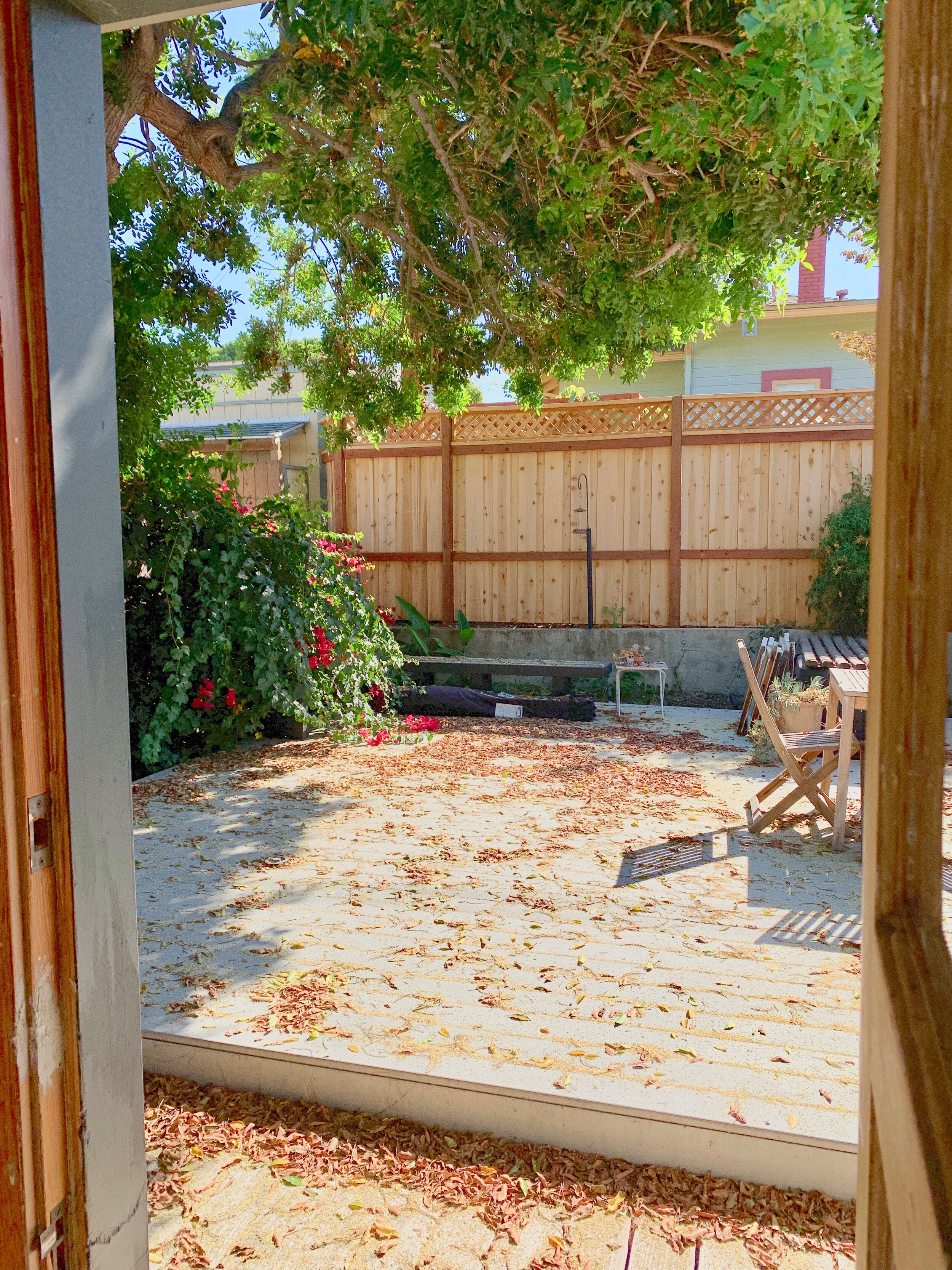 The tree also straddled our neighbor’s house, so he was constantly trimming his side of the tree back to keep it from making a mess and to keep it from shading his solar panels. Last year, his gardeners got overzealous and the tree was basically cut in half. The whole thing then started to lean towards our house and deck in an unfavorable way. With the big holes in the canopy, we lost the privacy wall, and it just overall became more of a burden for our daily sweeps and our neighbor’s semi-annual pruning.