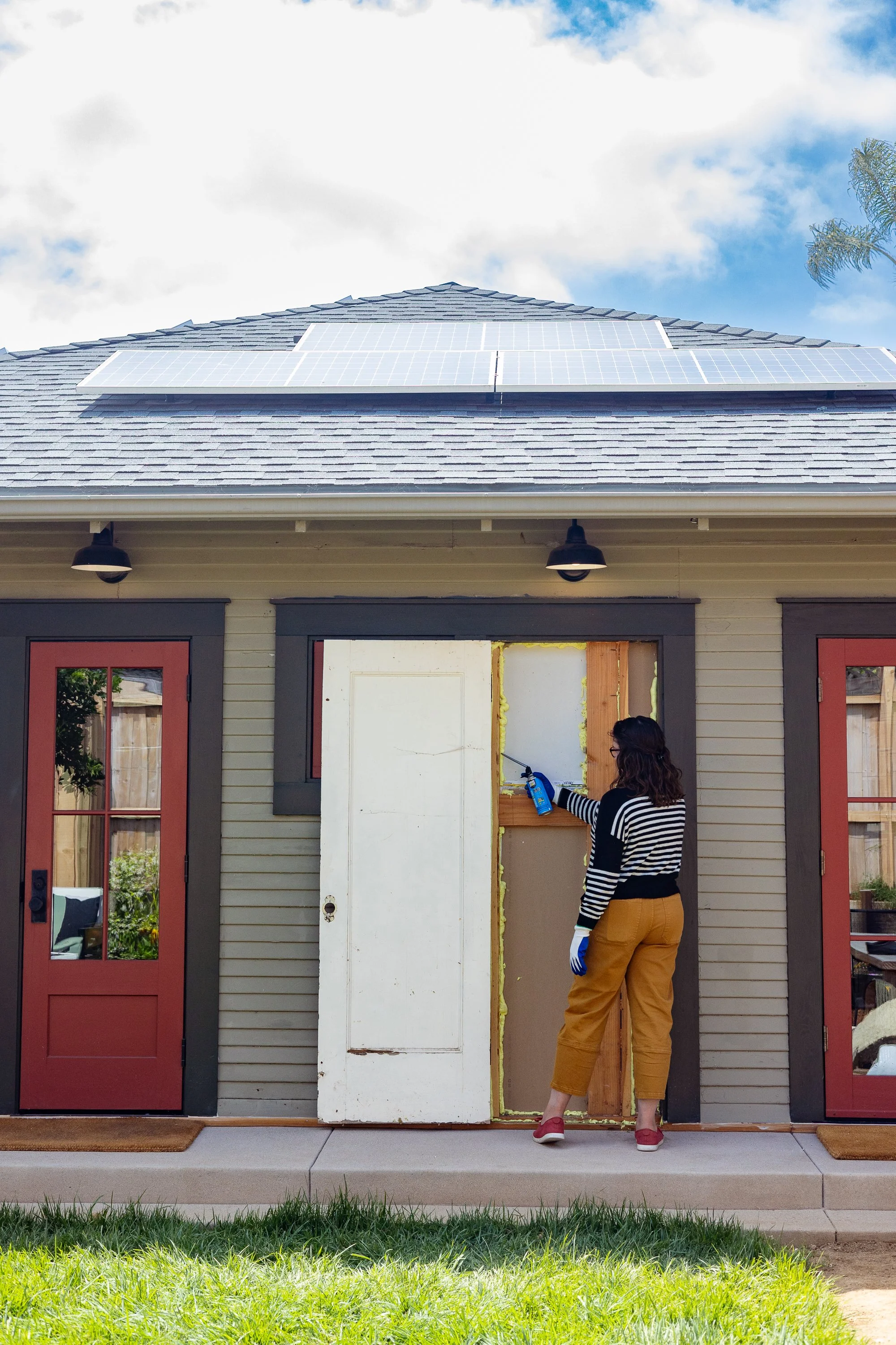When I mentioned this years ago, many people recommended I keep the door and use it to store things in the cavity. I love the idea! The challenge is that we have a mere 3” of space inside. Hardly enough room to put much of anything. Plus, this wall takes a beating from the sun, so insulating and weatherproofing the cavity is the right move for our home.