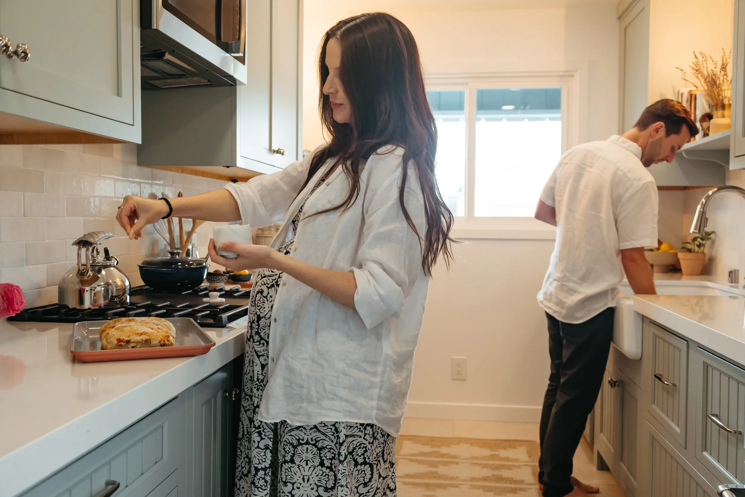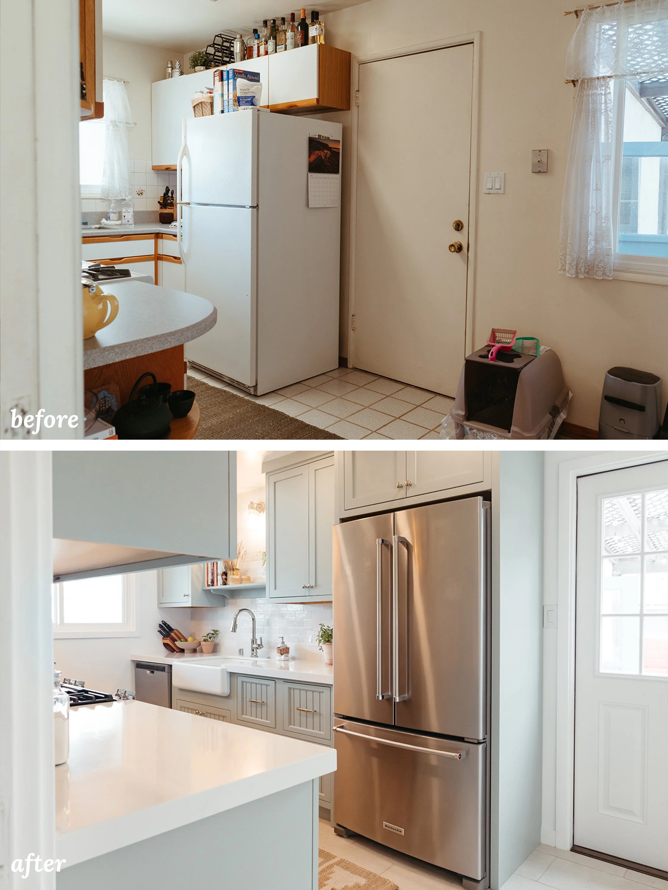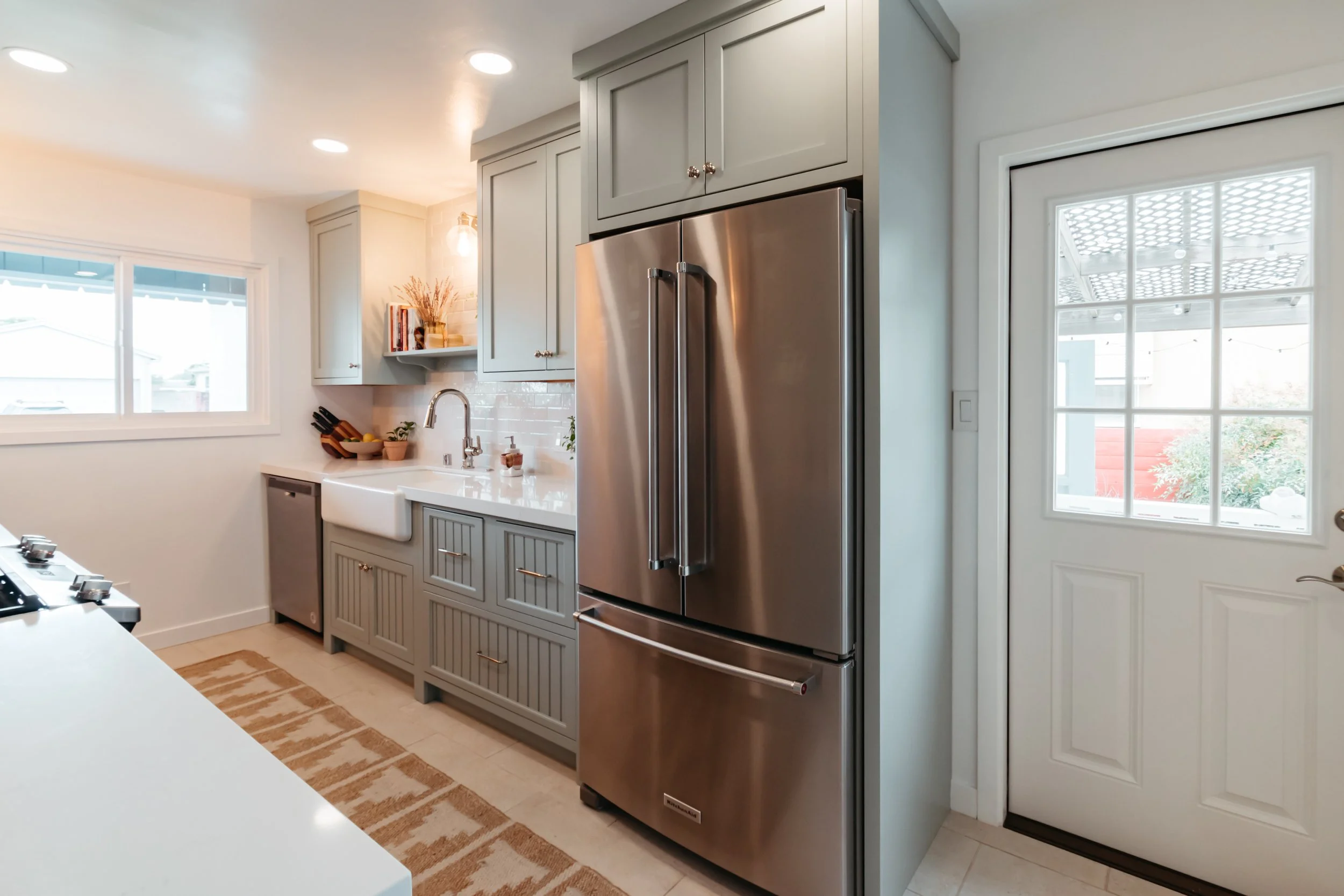 My friends Caroline and Alex had a narrow galley kitchen. At 8 feet wide, it had been doing its best for years but coming up short. Storage was scattered and there were dead zones where space wasn’t usable. A door to the garage interrupted the kitchen's most functional wall. And there was no path to the backyard except through the garage. Yard access is critical for this Southern California household that likes to dine al fresco! The kitchen felt disconnected from the way they like to live.